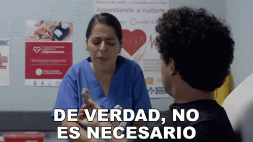 A nurse talks to a patient, with the on-screen text 'Really, it's not necessary' emphasizing her point.