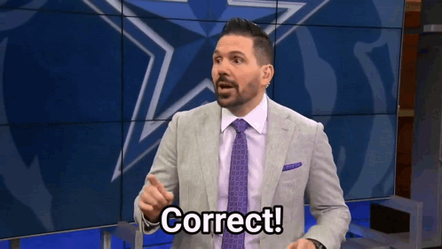 Dean Blandino, a sports analyst, emphatically says "Correct!" while pointing on a sports broadcast.