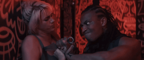 a woman is smoking a cigarette in front of a sign that says ' a ' on it