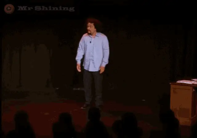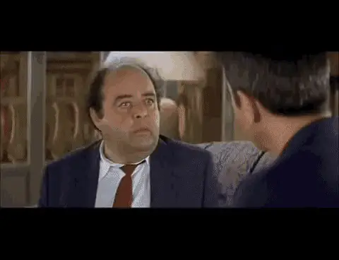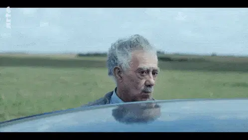 A tense moment from the film Dikkenek, where one man tells another to make a decision about leaving a revolving door.