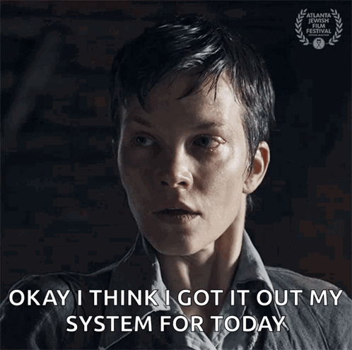 Anna (Sylvia Hoeks) expresses relief after a deep breath, saying 'Okay, I think I got it out my system for today.'