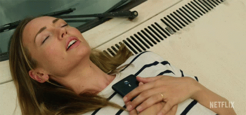 Laura Haddock as Zoe Walker takes deep, relaxed breaths while lying on a car hood, from the series White Lines.