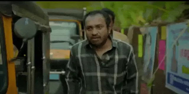 Marques King in a red and blue plaid shirt takes a deep sigh and crosses his arms while sitting on a couch.