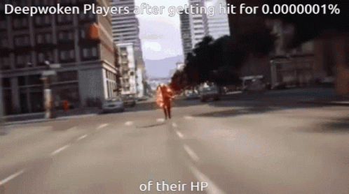 Deepwoken players overreacting to minimal damage, featuring a running Flash and a surprised woman.