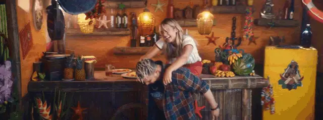Nicky Jam in a music video clip, with the Spanish text 'DÉJATE LLEVAR' (Let Yourself Go) overlaid.