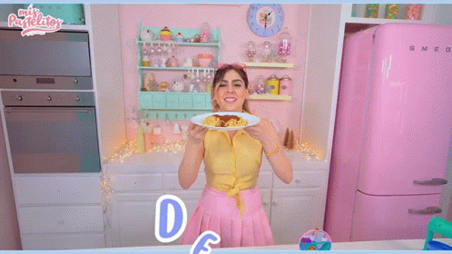Gris Verduzco from Mis Pastelitos presents a delicious dish, with 'DELICIA' displayed on screen.