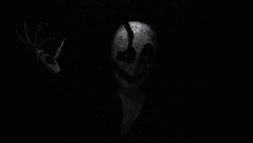 a black and white photo of a skeleton in a suit making a peace sign in the dark .