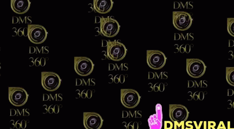 An animated display of the 'DMS 360°' logo repeating on a black background, featuring the 'DMSVIRAL' watermark.