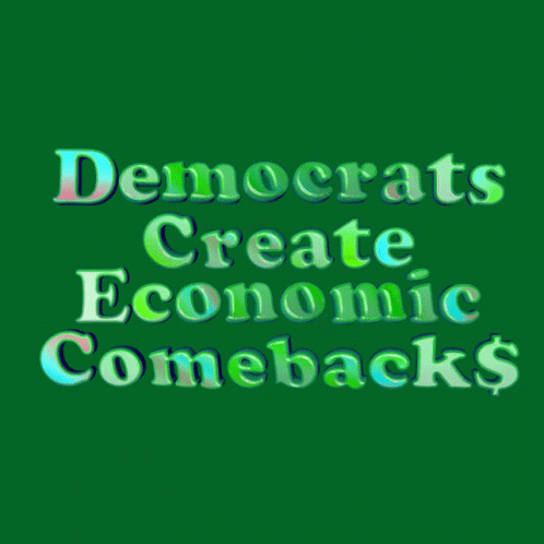 A vibrant green background displays the impactful message: 'Democrats Create Economic Comebacks$'.