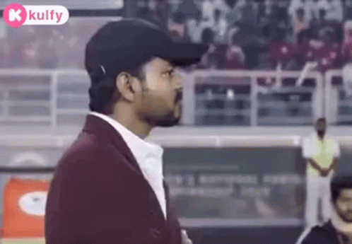 Actor Vijay looks sad and depressed, wearing a cap and suit on a field, likely from the movie Bigil.
