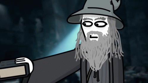 Cartoon Gandalf from 'Der Drogg' series clearing his throat while reading a book.