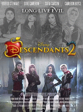 Movie poster for Disney's Descendants 2 featuring BooBoo Stewart, Dove Cameron, Sofia Carson, and Cameron Boyce.