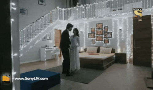 Dev Dixit carries Sonakshi Bose in a romantic scene from Kuch Rang Pyar Ke Aise Bhi, set in a beautifully lit room.