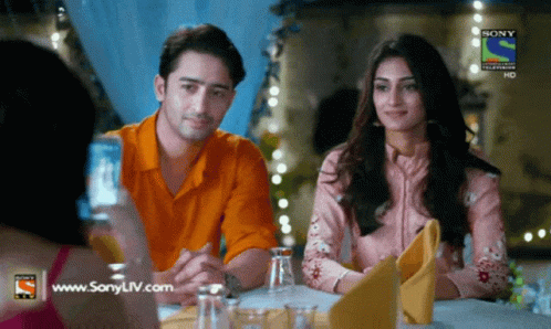 Shaheer Sheikh as Dev Dixit and Erica Fernandes as Sonakshi Bose from KRPKAB pose for a photo at a table.