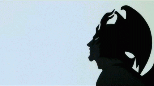 A powerful silhouette of Devilman expresses profound sorrow, lamenting that his tears have all dried up.