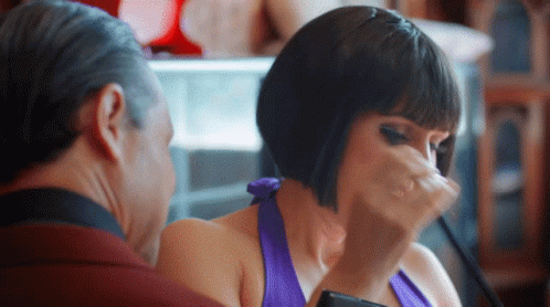 A woman in a purple top says 'I knew I was gonna like you' to a man, from a Dhar Mann video.