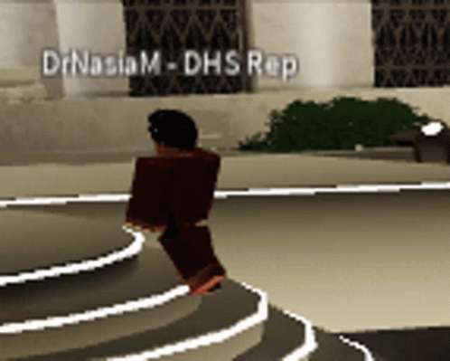 A Roblox-style character named DrNaslaM, identified as a DHS Rep, in a game setting.
