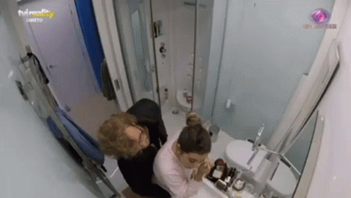 Di and Cath from Big Brother 2020 in the bathroom, getting ready at the sink.