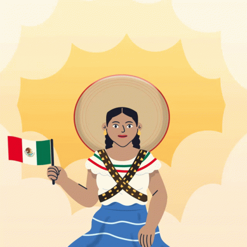 Illustration of Adelita holding a Mexican flag, celebrating Día de la Revolución Mexicana on November 20.