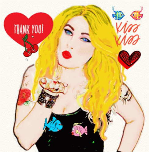 Silviane Moon blows a kiss, surrounded by hearts and 'Thank You' for Valentine's Day.