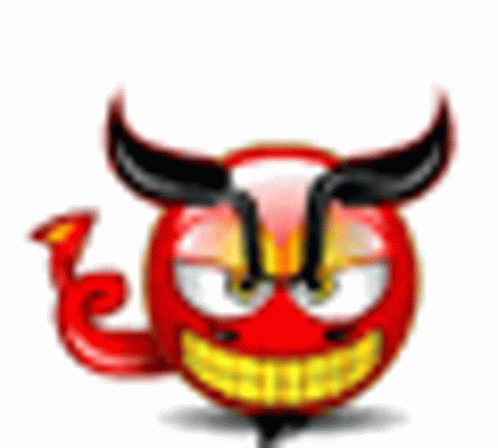 A red devil smiley face with horns and a tail, featuring a mischievous grin.