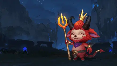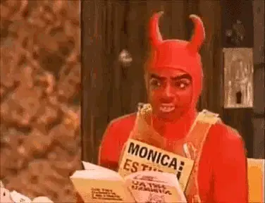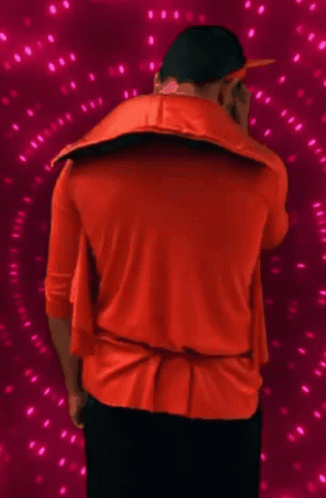 A man energetically dancing in a vibrant red Diablillo devil costume with horns and cape-like details.