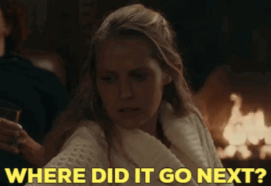 Diana Bishop, portrayed by Teresa Palmer, looks confused in front of a fireplace with the caption "WHERE DID IT GO NEXT?".
