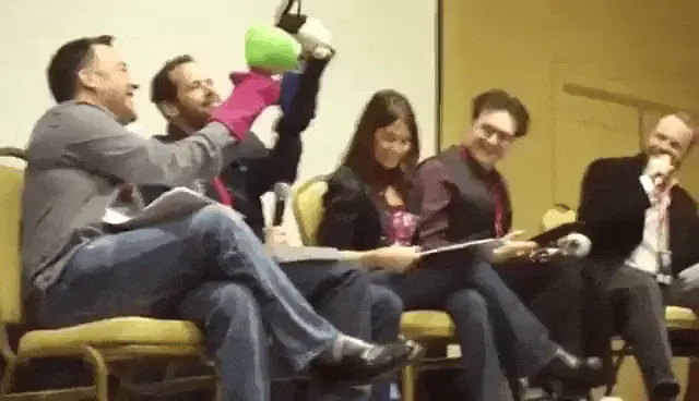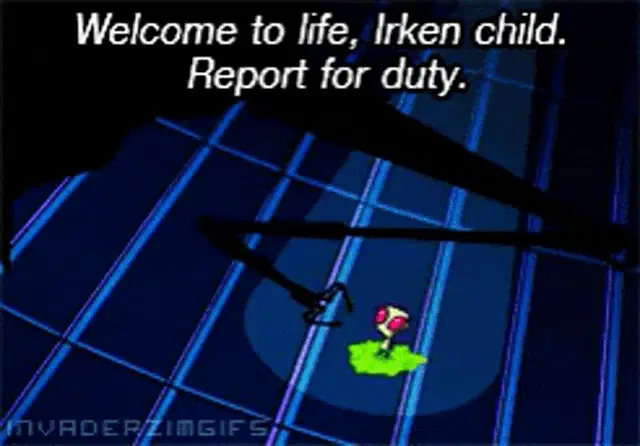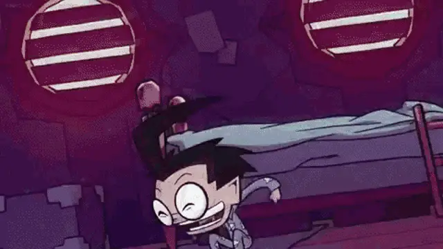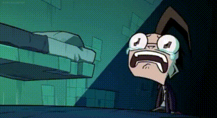 Dib Membrane from Invader Zim cries intensely before collapsing to the ground in a dramatic moment.