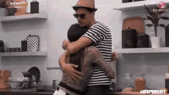 Ana Catharina and Diogo Reffoios, known as Dicath, share a warm embrace on a bed during Big Brother 2020 TVI.