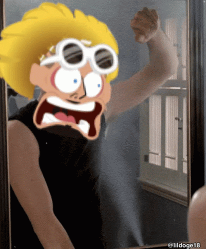Cartoon character Johnny Test reacts in shock as a mirror is punched, featuring the lildoge18 watermark.