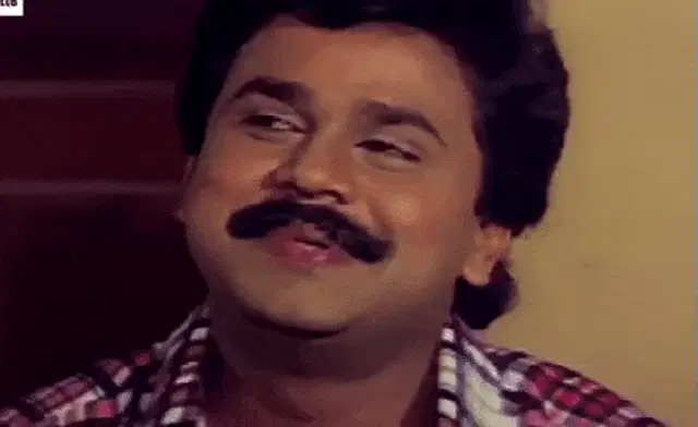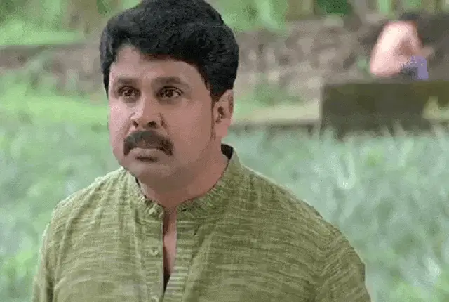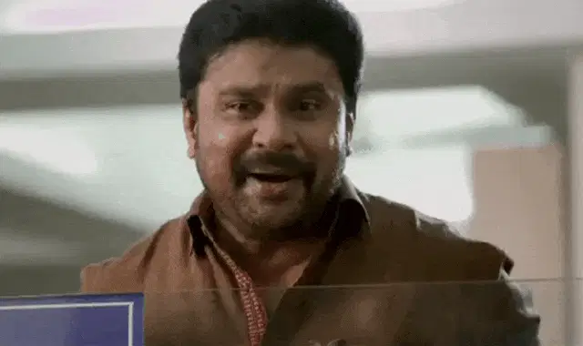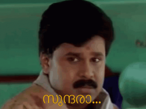 Dileep makes a funny, expressive face with the Malayalam caption 'സുന്ദരാ...' (Sundara...) from the movie Parakkum Thalika.
