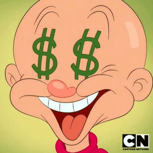 Elmer Fudd with dollar signs in his eyes, dreaming of wealth and money.