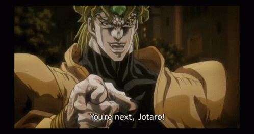 Dio from JoJo's Bizarre Adventure points at the viewer, declaring 'You're next, Jotaro!'