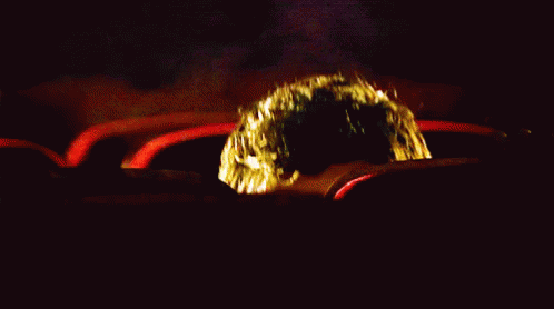 David Tennant peeks over a red seat in a dark room, looking surprised or scared.
