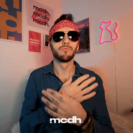 Man in sunglasses and bandana dancing energetically, featuring 'mcdh' and 'human design' themes.
