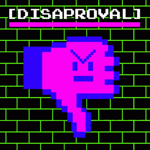 Pixel art animation of a thumbs down sign with 'disapproval' text.