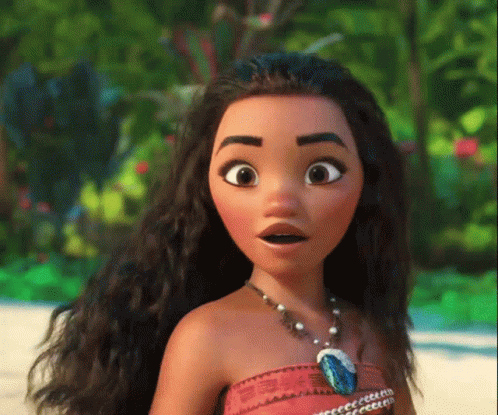 Moana's face transitions from surprised and excited to a happy smile, showcasing her vibrant emotions.