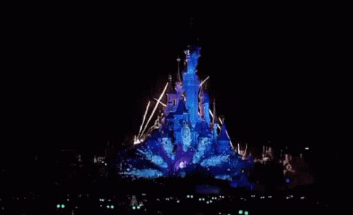 Spectacular fireworks and projection show over the iconic Disneyland castle during Christmas.