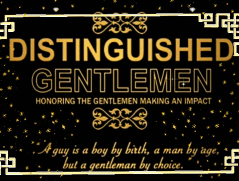 A powerful graphic celebrating 'Distinguished Gentlemen' and honoring those making an impact, featuring an inspiring quote.
