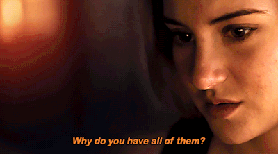 Shailene Woodley as Tris Prior in Divergent, asking 'Why do you have all of them?'