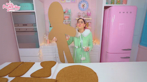 Gris Verduzco from Mis Pastelitos in a fun, excited moment with gingerbread cutouts.