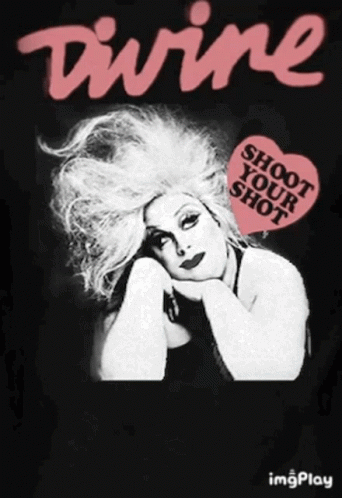 Iconic drag queen Divine on a 'Shoot Your Shot' poster, featuring Harris Glen Milstead.