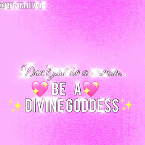 A vibrant pink background with the empowering message "Don't just be a woman. BE A DIVINE GODDESS" by Megan L Divine.