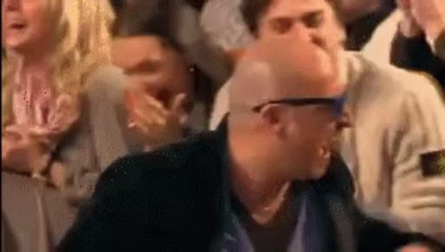 Dmitry Nagiev laughing heartily in sunglasses while in an audience.