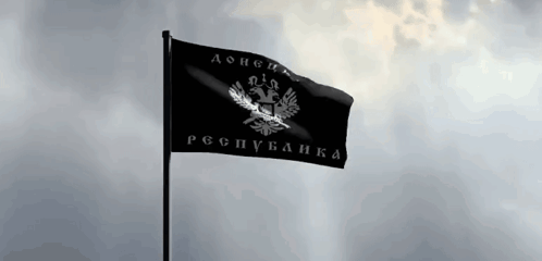 The black flag of the Donetsk People's Republic (DPR) with its silver double-headed eagle emblem waving.