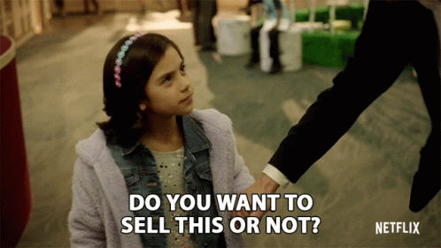Scarlett Estevez as Trixie Espinoza holds a man's hand and asks, "Do you want to sell this or not?" from the show Lucifer.