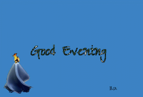A warm 'Good Evening' greeting with glittery text and a stylized candle on a blue background.