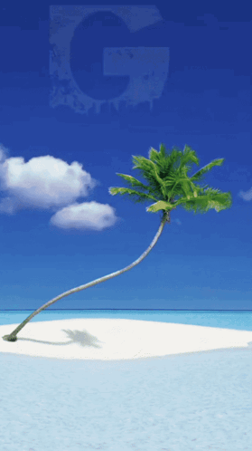 A beautiful tropical beach scene with a palm tree and 'Good Morning!' text.