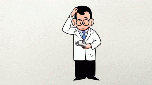 A cartoon doctor in a lab coat scratches his head, appearing to be deep in thought or confused.
