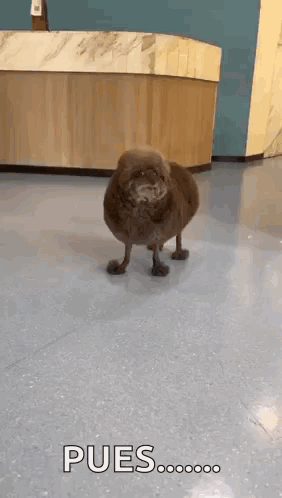 A dog with an incredibly unusual haircut walks around, resembling a theoretical creature with a round body and tiny legs.